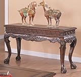 The Ball and Claw Sofa Table by Coaster rendered in a dark brown finish is an opulent statement for your living area. The detailed carvings on legs and skirt and an ornament accents make this occasional table from the Ball and Claw Collection an essential